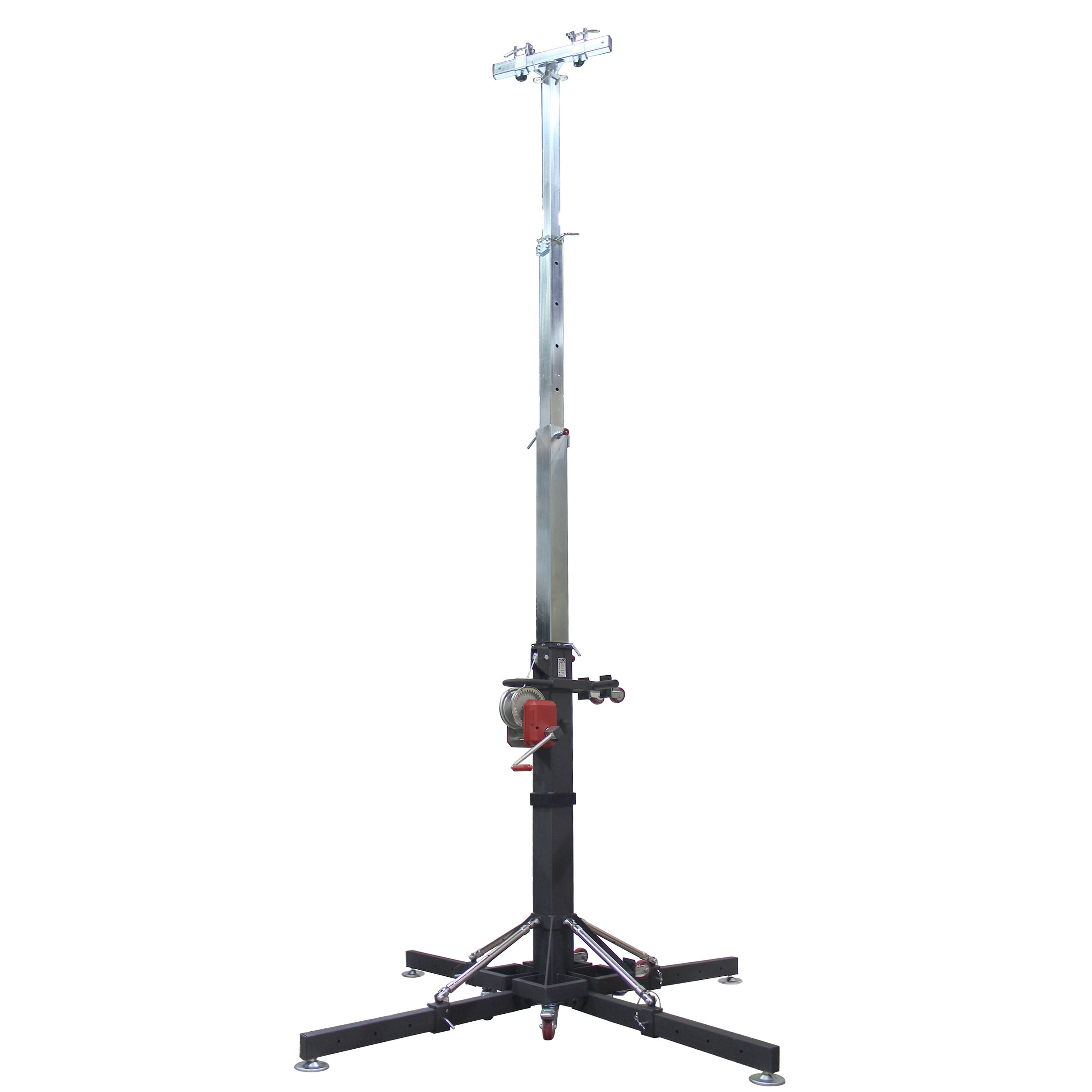 The ProX XT-CRANK18FT-500 is designed to support truss pieces, constructions, speakers, or other gear. This stand rises to a maximum height of 18′, weighs 229 lb, and can support up to 500 lbs.