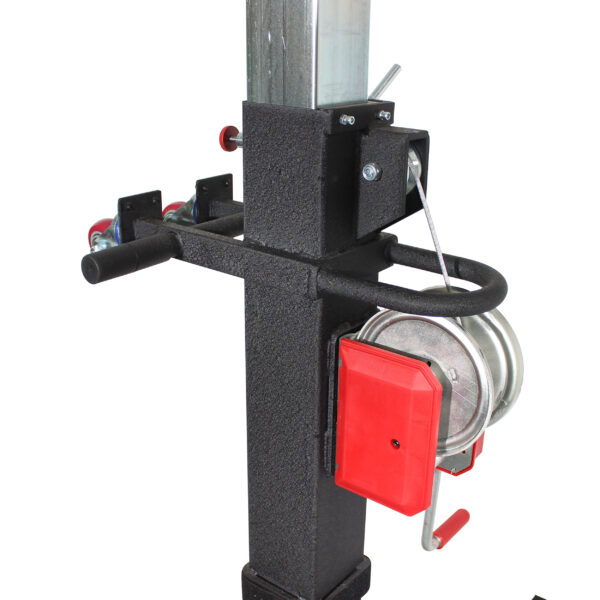 - For lowering the tower, turn the winch handle counter-clockwise.